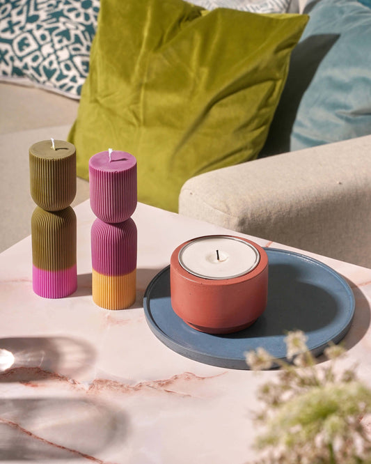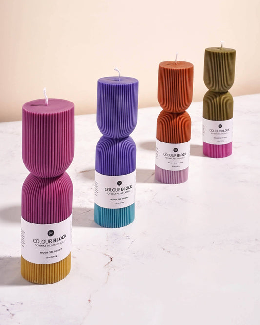Color Block Pillar Candle - Fuchsia & Mustard