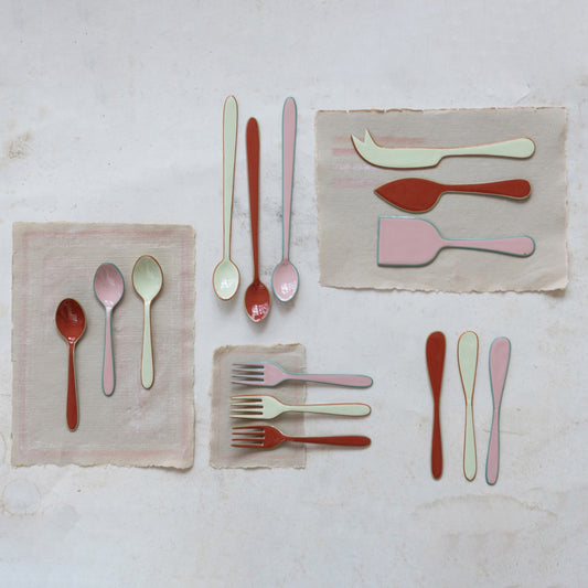 Enameled Stainless Steel Small Spoon with Colored Edge