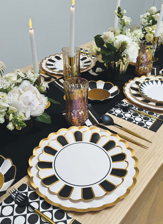 Scalloped Dinner Plate Gold & White Scalloped-8ct
