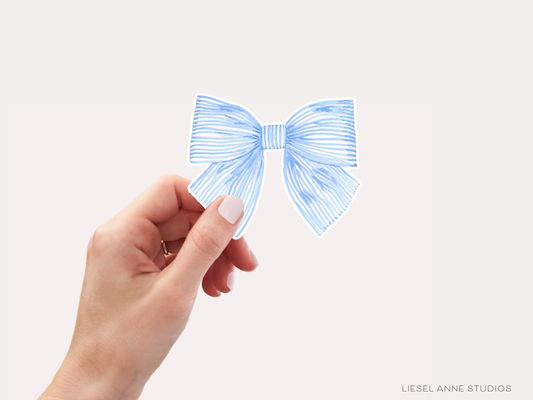 Blue Striped Bow Vinyl Sticker