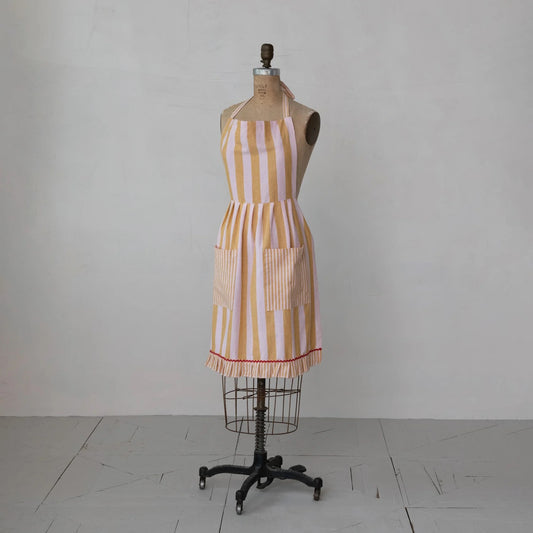 Striped Ruffle Apron, Pockets & Ric Rac Trim