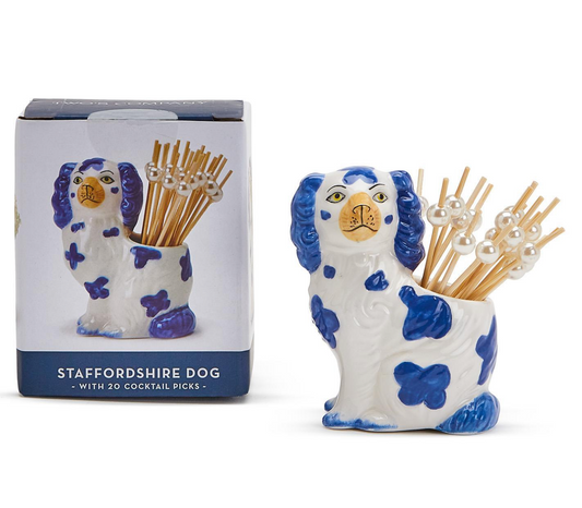Staffordshire Dog Toothpick Holder + Pearl Picks