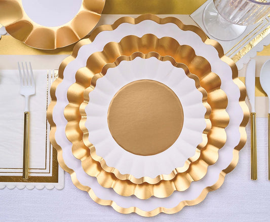 Scalloped Dinner Plate Gold & White Scalloped-8ct
