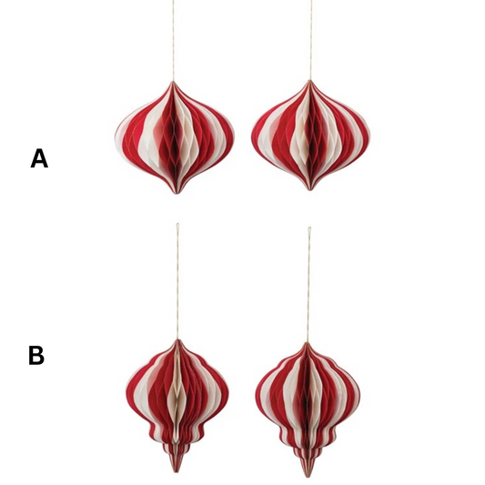 Red/White Honeycomb Paper Ornaments, 2 Styles