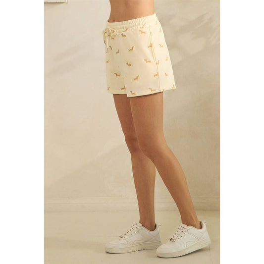 Ivory Dachshund/Weiner Dog Printed Shorts S-L