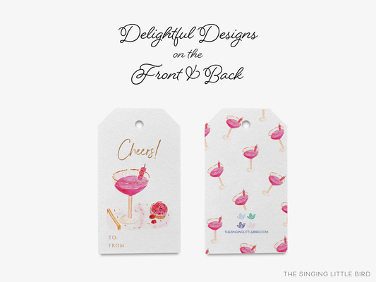 Pink Coupe Glass Cheers Gift Tags [Sets of 8]