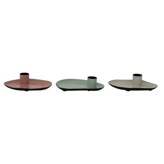 Enameled Metal Taper Holder with Tray, 3 Styles