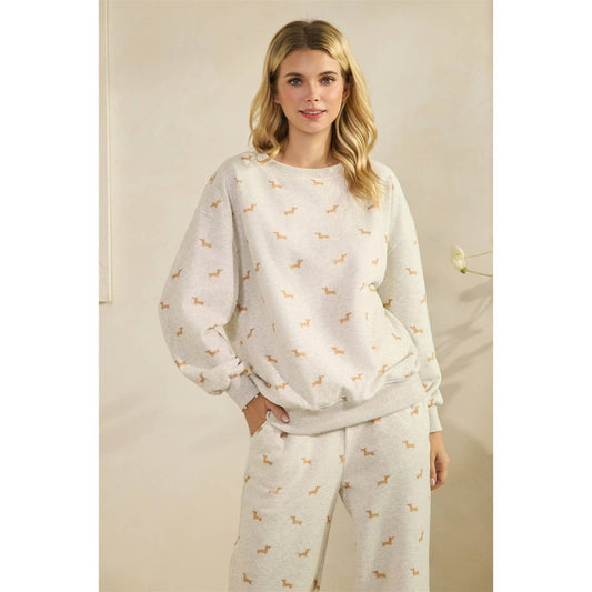 Dachshund/Wiener Dog Print Sweatshirt- Heather Gray S-L