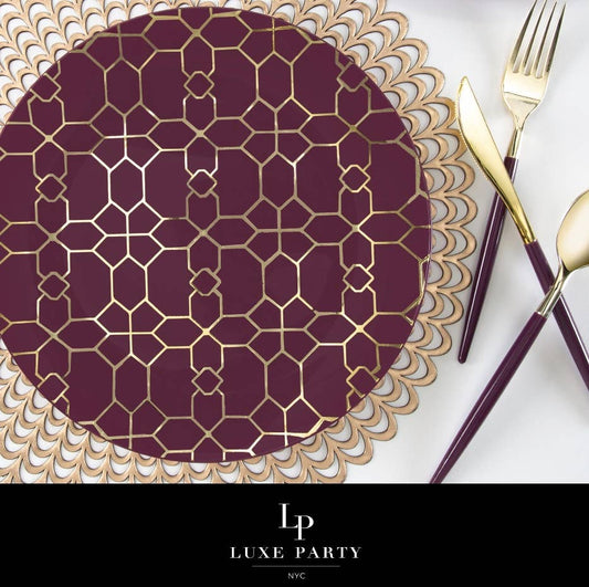 Chic Round Maroon and Gold Forks | 32 Pieces