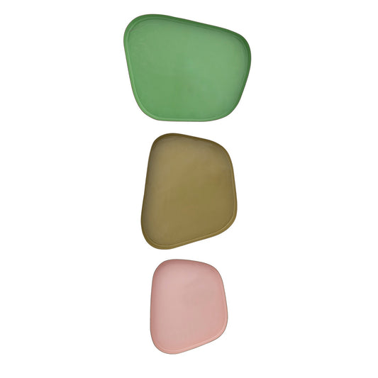 Pink + Green Enameled Metal Organic Shaped Trays, Set of 3