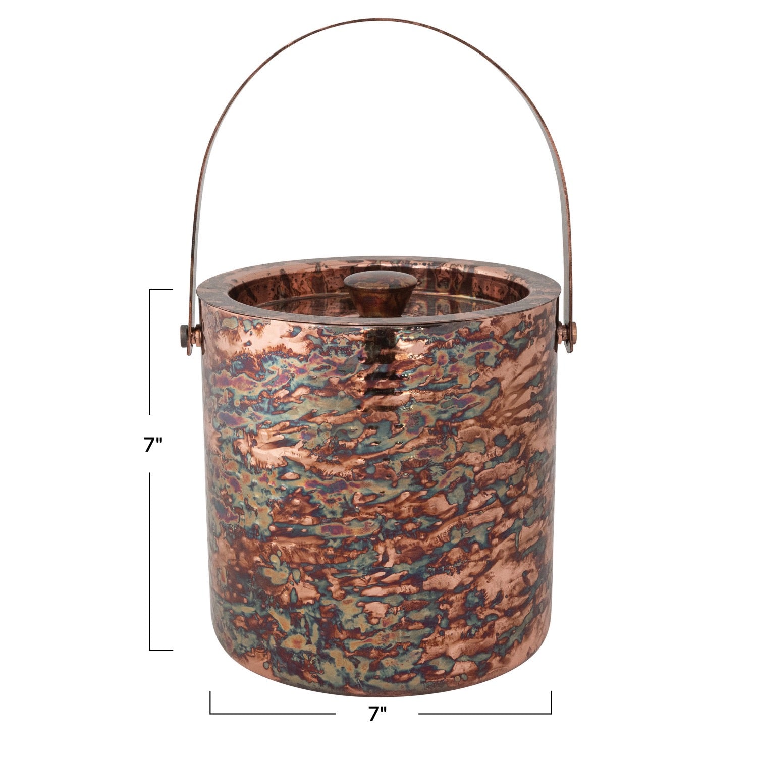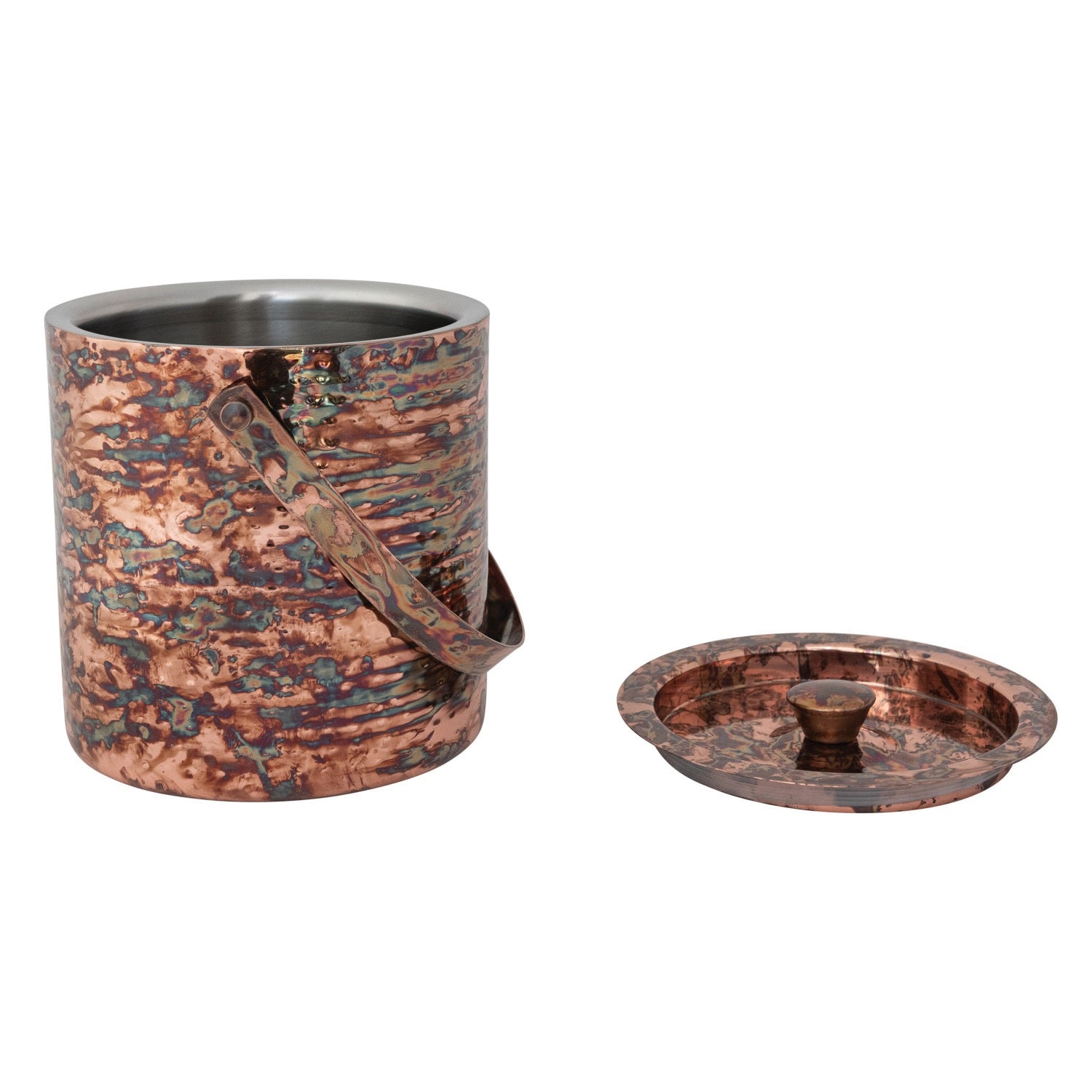 3 Quart Hammered Stainless Steel Double-Walled Ice Bucket, Oxidized Copper Finish