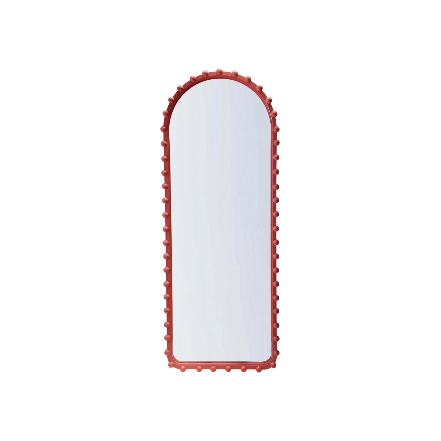 26-1/2"W x 67-3/4"H Wood Ball Framed Arched Wall Mirror, Pink