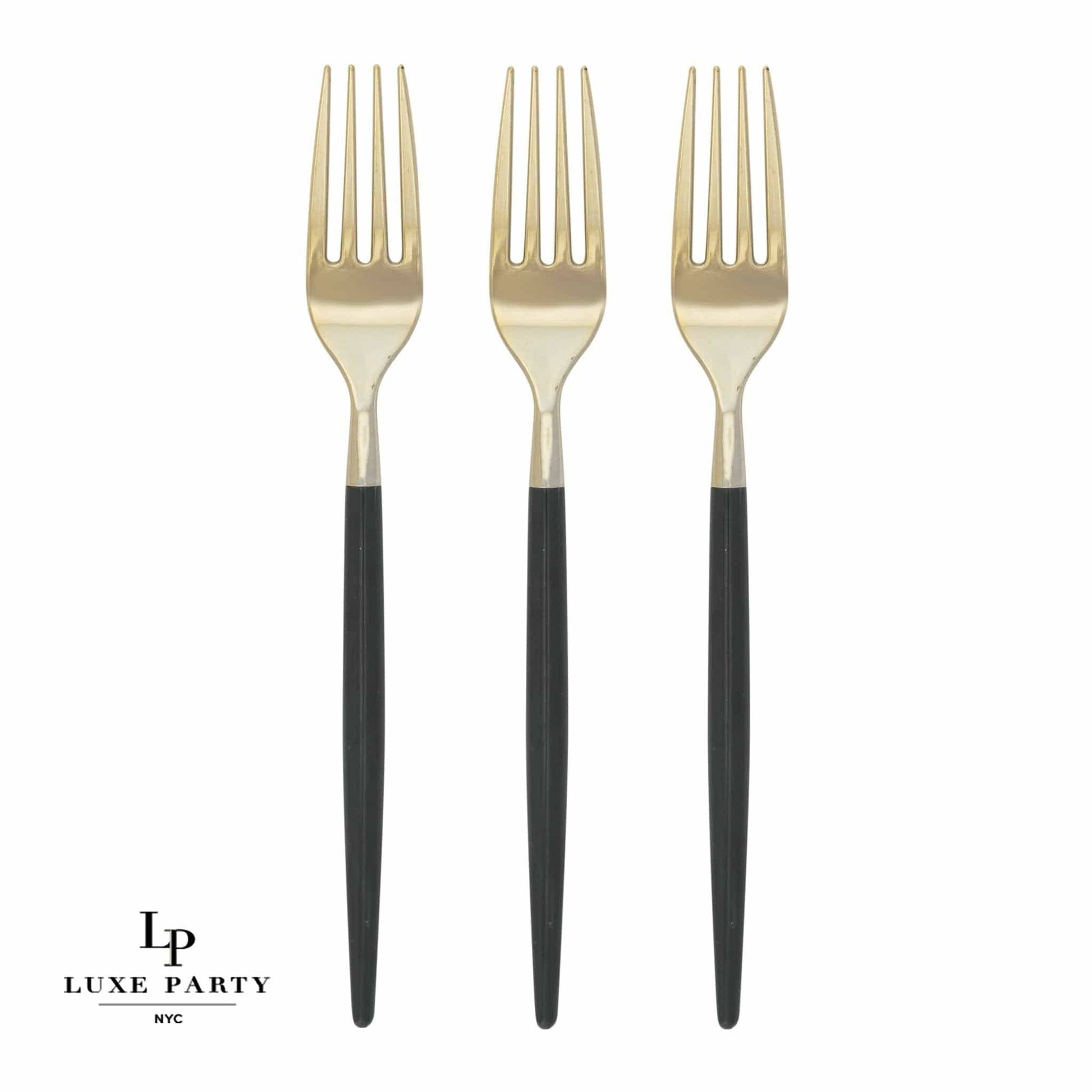 Chic Round Emerald and Gold Forks | 32 Pieces