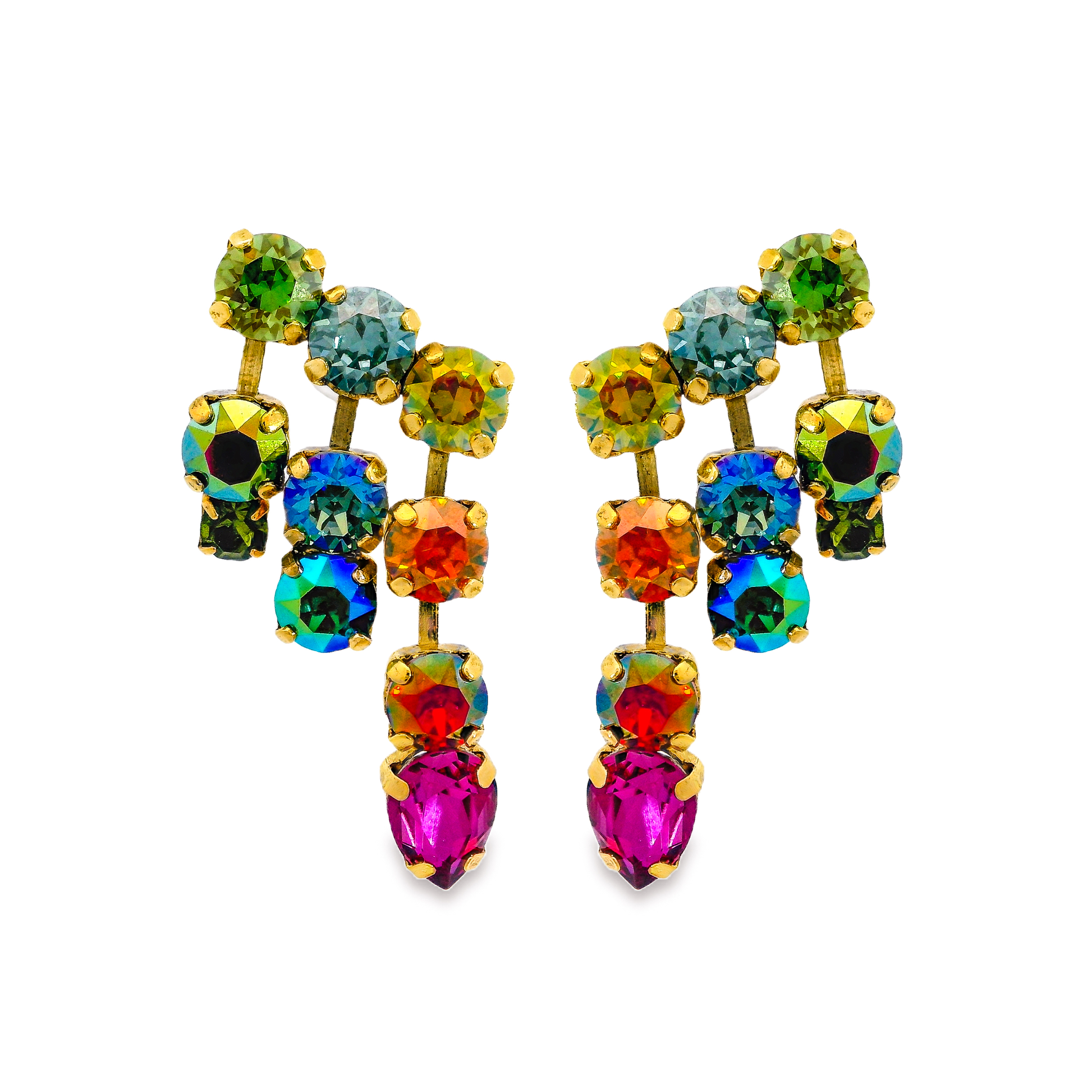 Add a touch of antique elegance with our Dara Earrings. These 1.25" long earrings are crafted with high quality crystals on an antique Gold plated brass base. Hypoallergenic surgical steel posts ensure comfortable wear. Made in Canada.