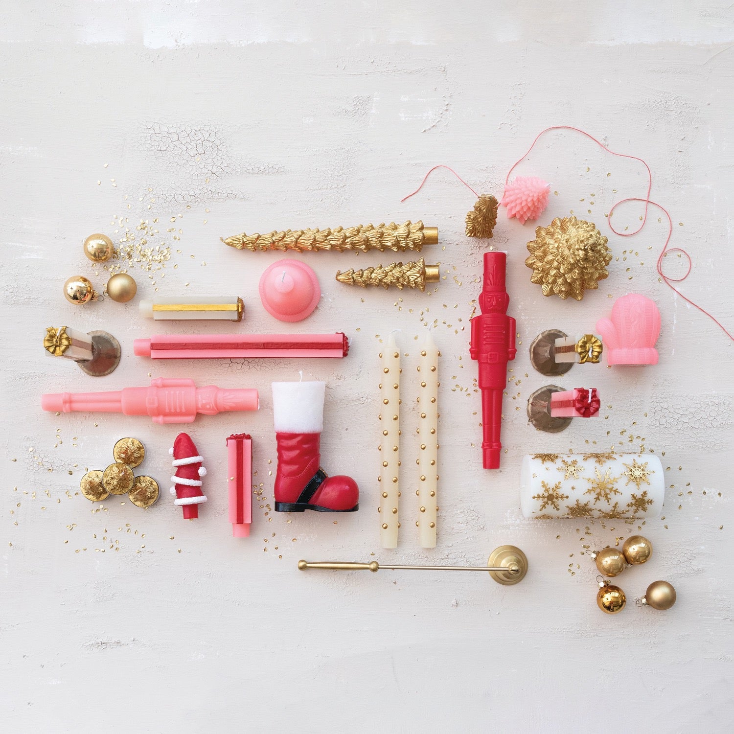 4-3/4"H Unscented Package Shaped Taper Candles in Box, Pink & Red, Set of 2 (Est. Burn Time 6 Hours)