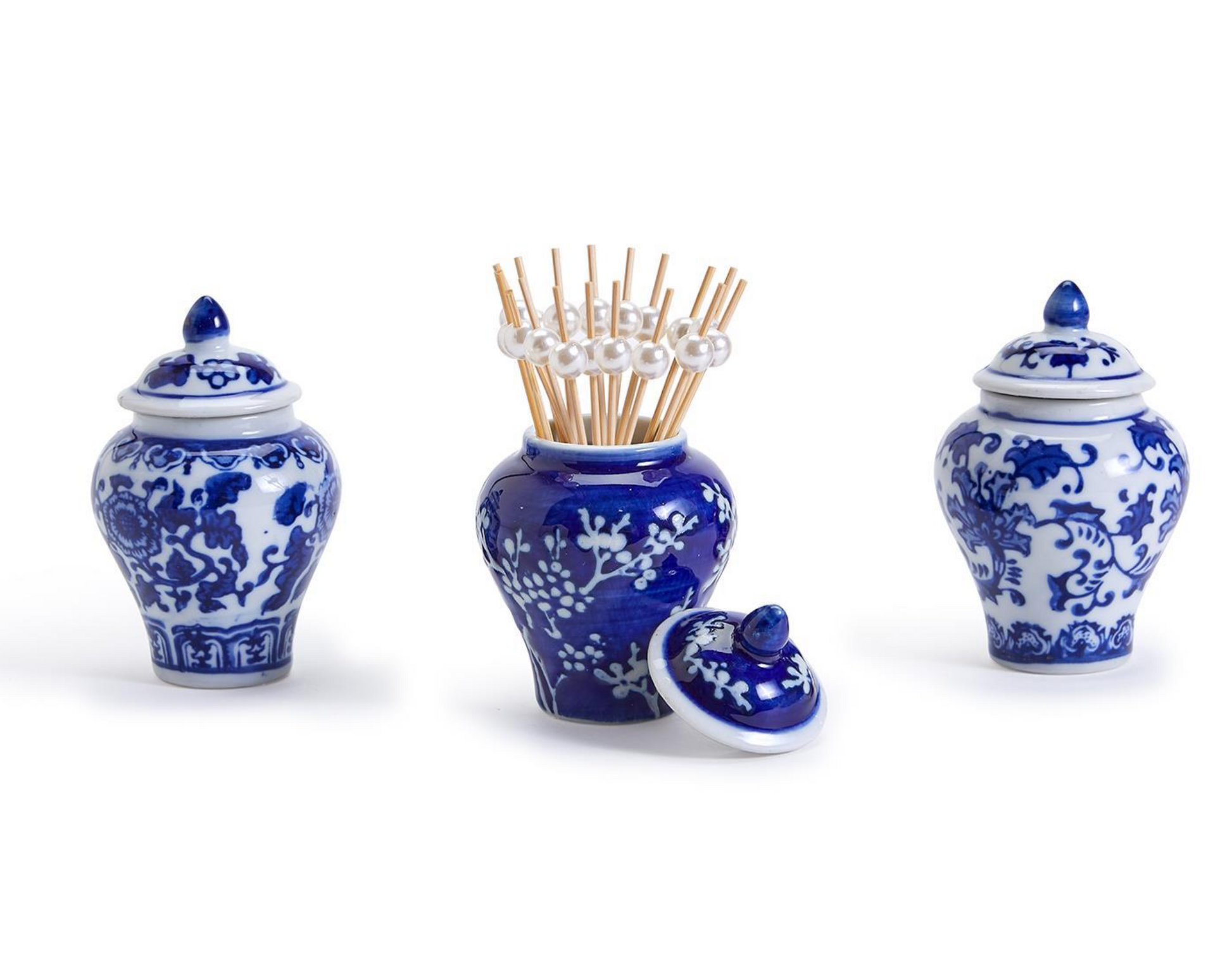 We have shrunk our Large traditional Ginger Jar into a mini pick jar! Makes for a charming statement in your kitchen. Beautifully hand-painted porcelain each packed in a gift box.