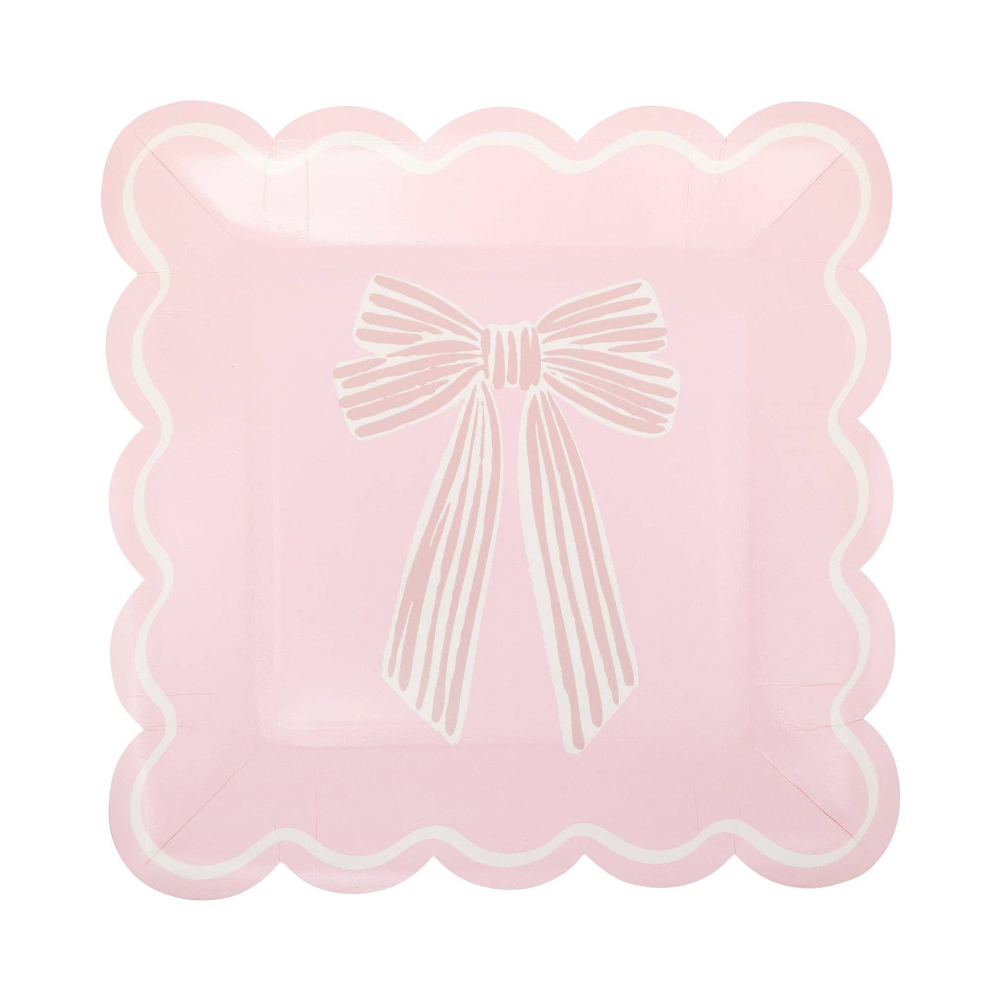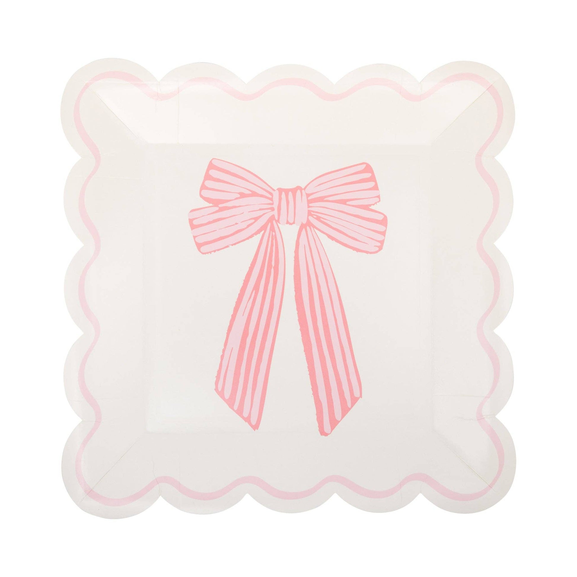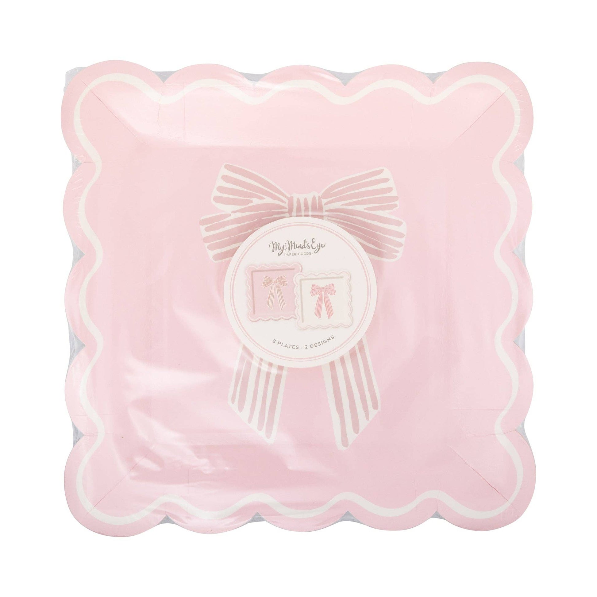 Add a festive and fun touch to your holiday table with this Large Pink Bows Paper Plate Set. Perfect for Christmas parties, these plates feature charming pink bow designs that add a playful, elegant flair to your celebration. Make your Christmas gathering uniquely delightful with this stylish and cheerful tableware. • includes 8 shaped paper plates • 4 each of 2 designs • 9" x 9" inches