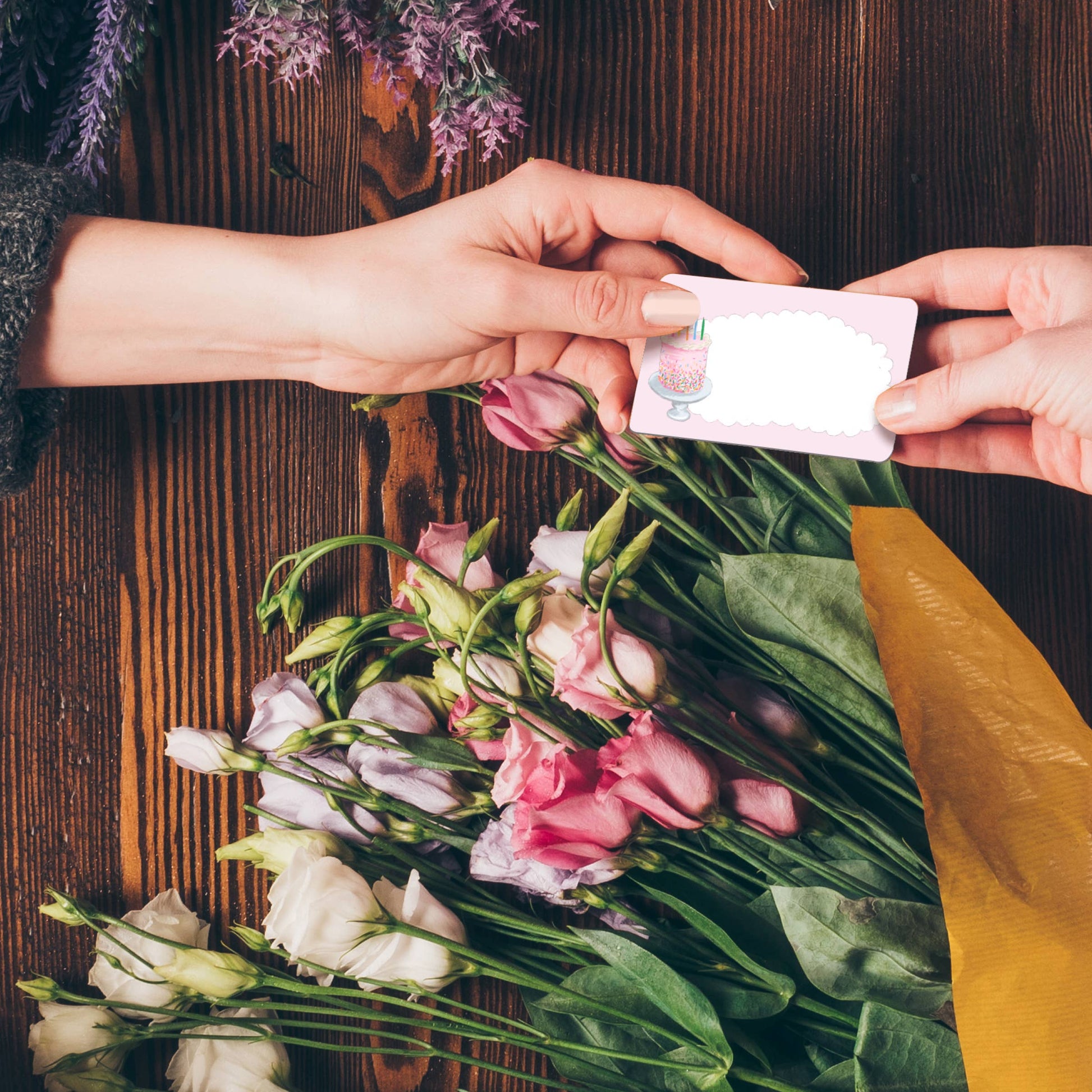 Keywords: enclosure card, florist card, gift enclosure, florist enclosure, love note, lunch box note, lunchbox note, birthday card, birthday gift, gift tag, birthday cake