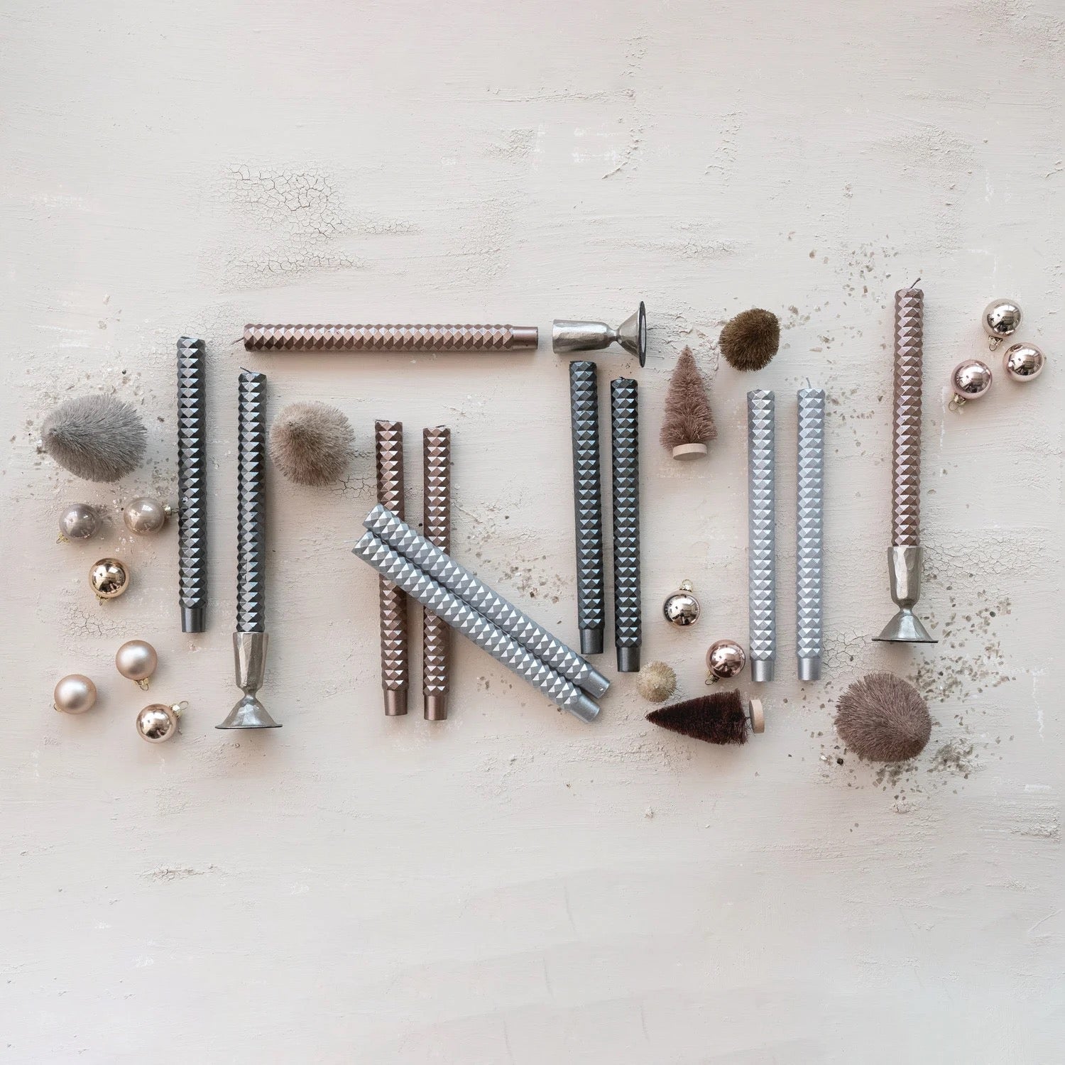 10"H Unscented Faceted Taper Candles in Box, Silver Color, Set of 2 (Est. Burn Time 9 Hours)